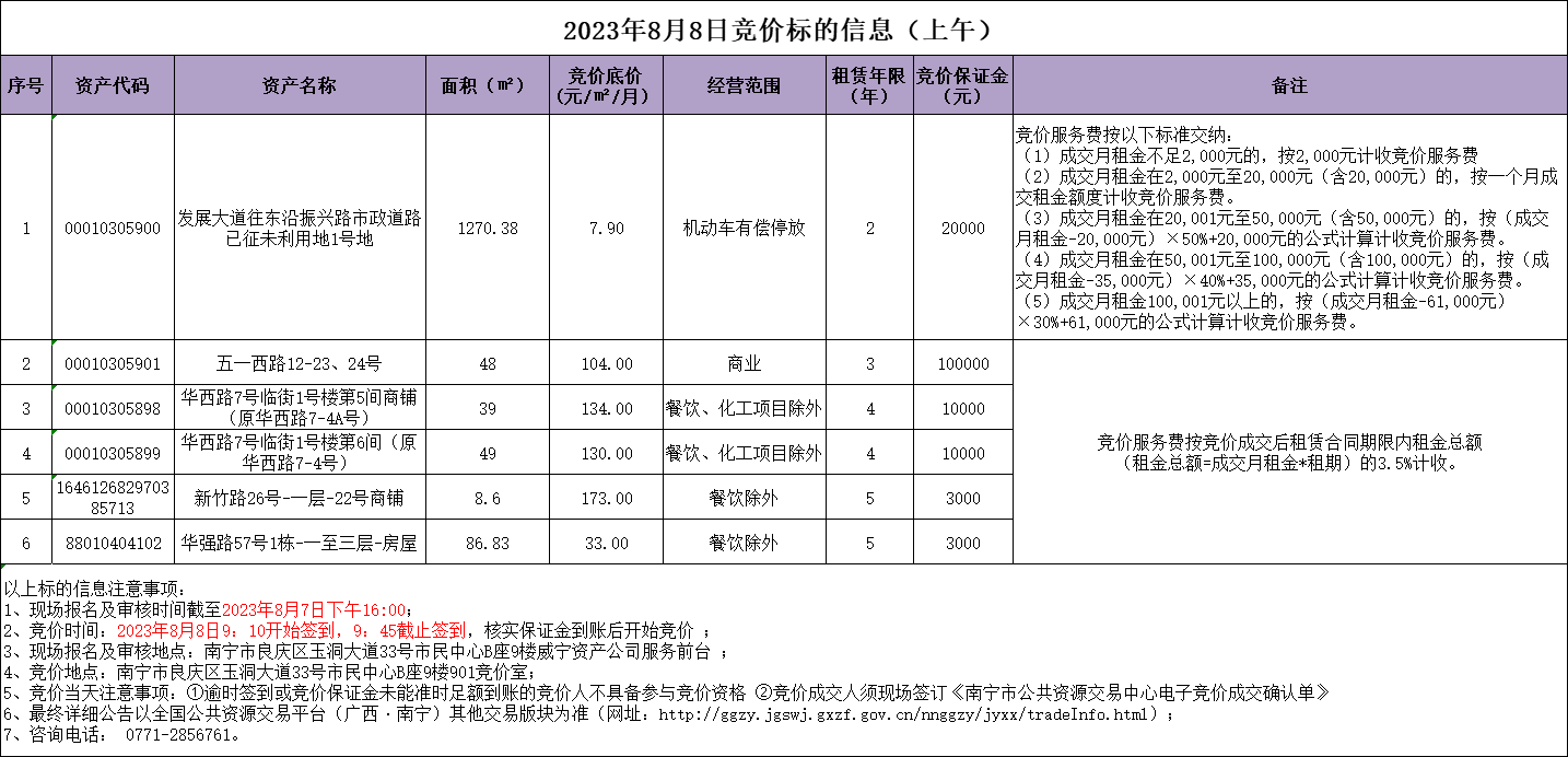 2023年8月8日竞价标的信息