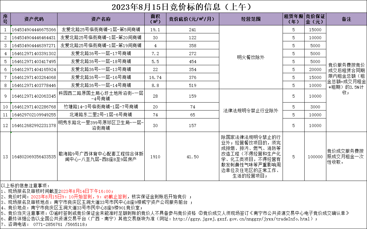 2023年8月15日竞价标的信息