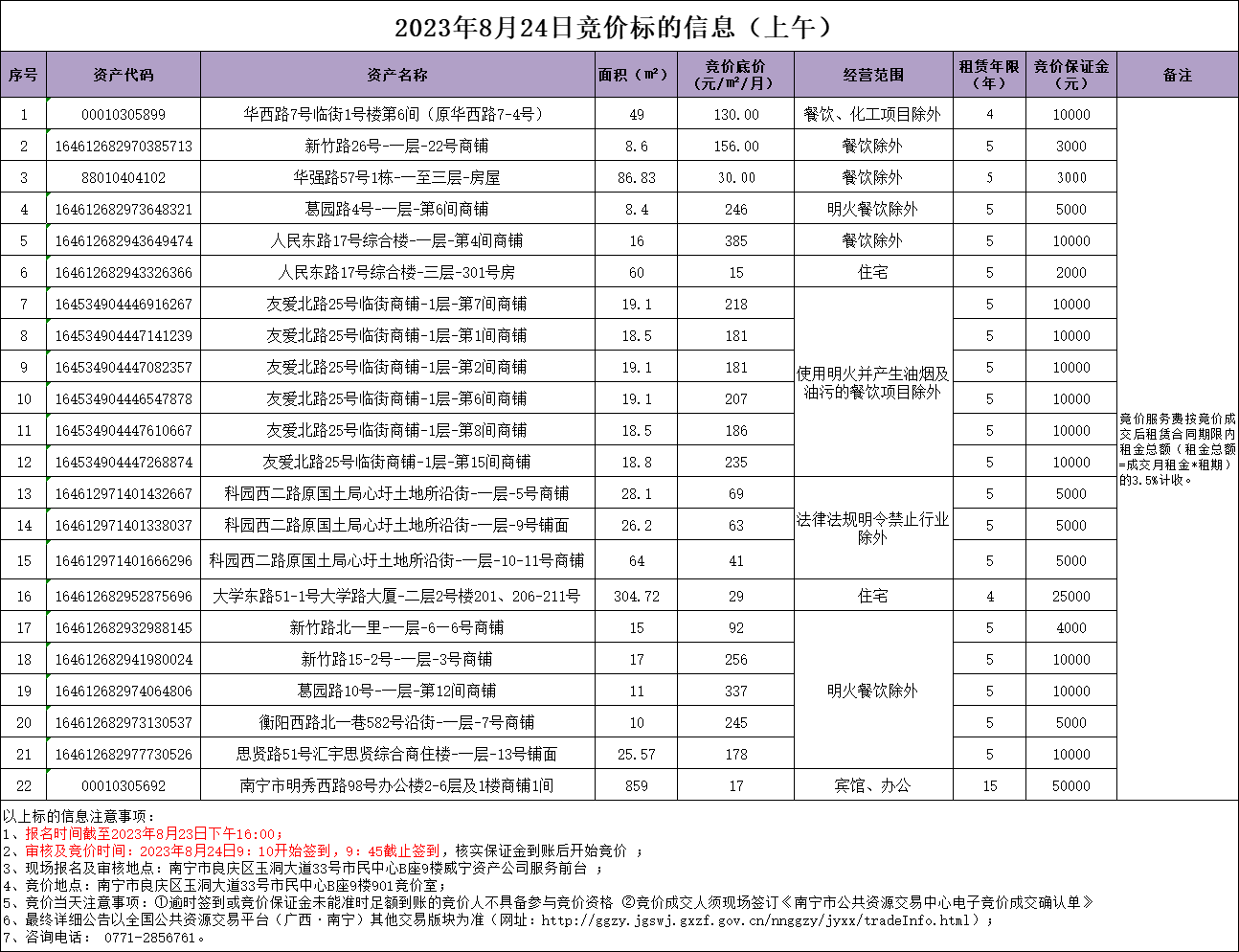 2023年8月24日竞价标的信息