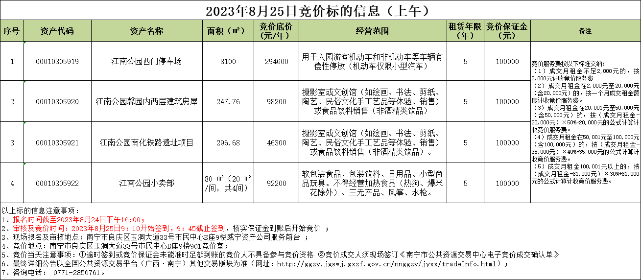 2023年8月25日竞价标的信息