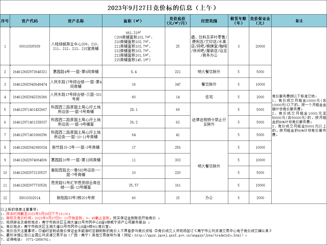 2023年9月27日竞价标的信息