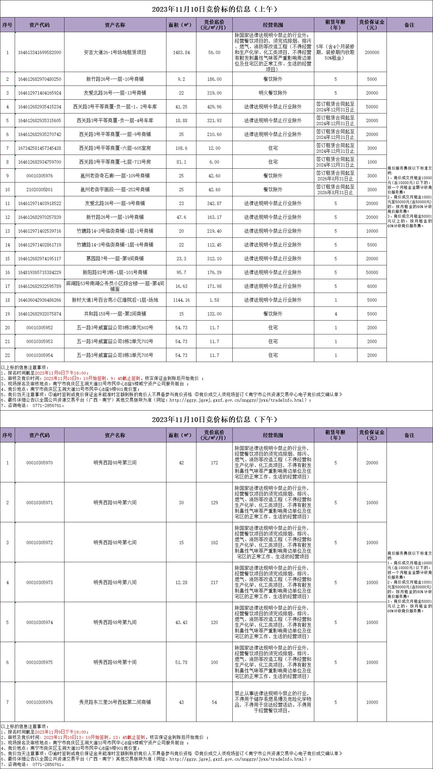 2023年11月10日竞价标的信息