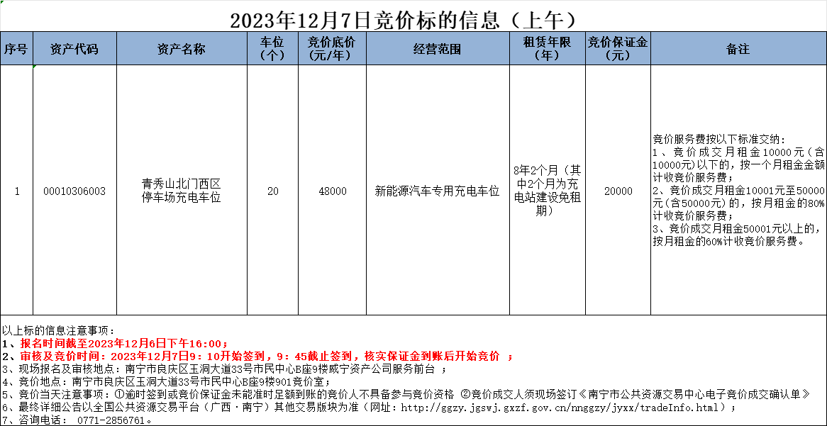 2023年12月7日竞价标的信息