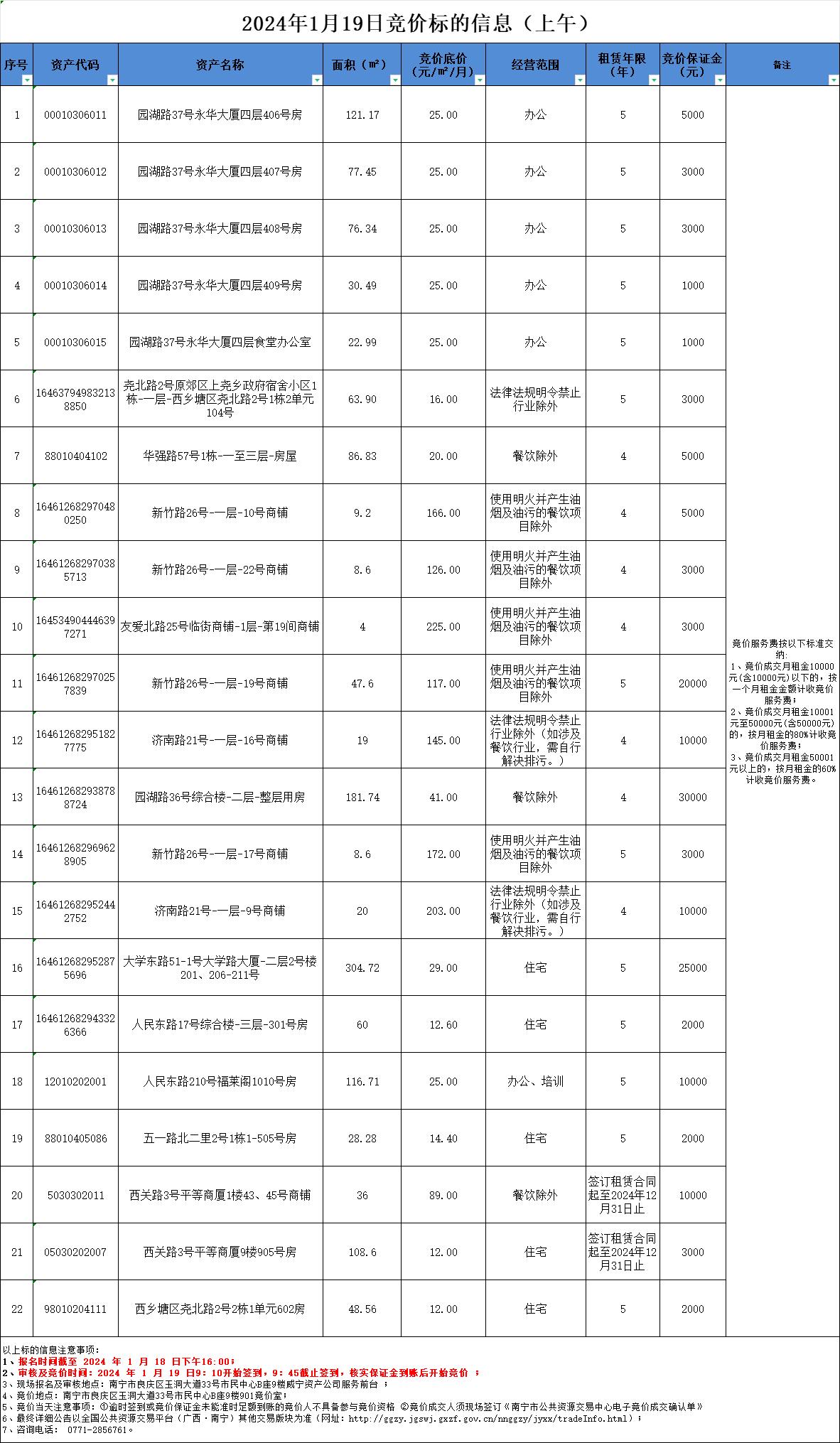 2024年1月19日竞价标的信息