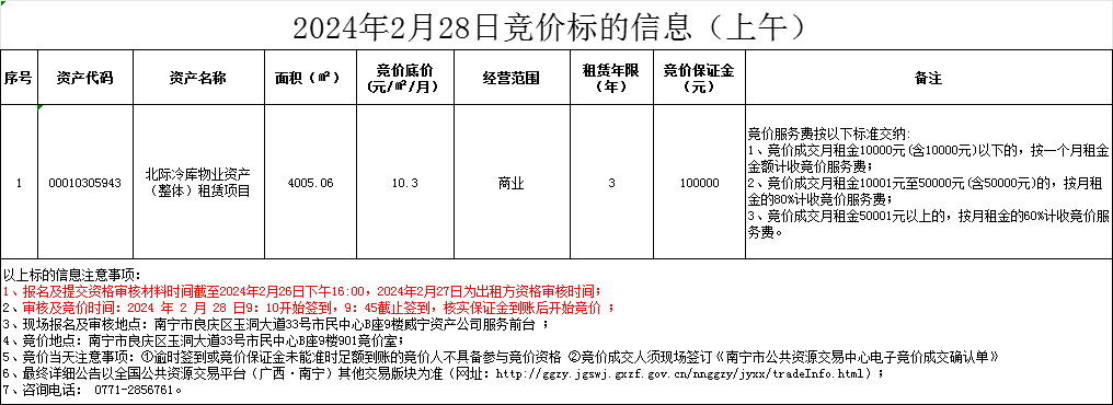 2024年2月28日竞价标的信息
