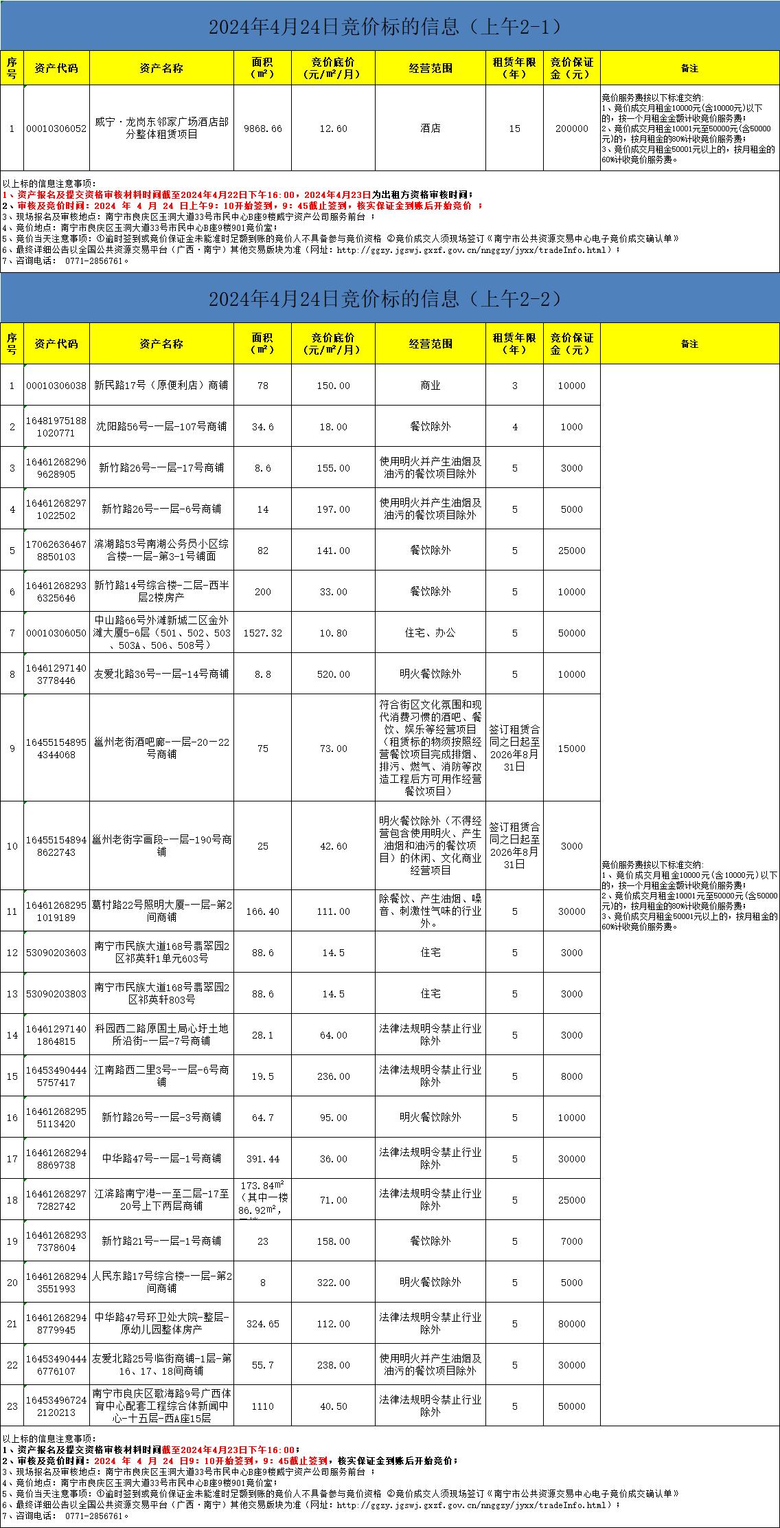 2024年4月24日竞价标的信息(现场竞价)