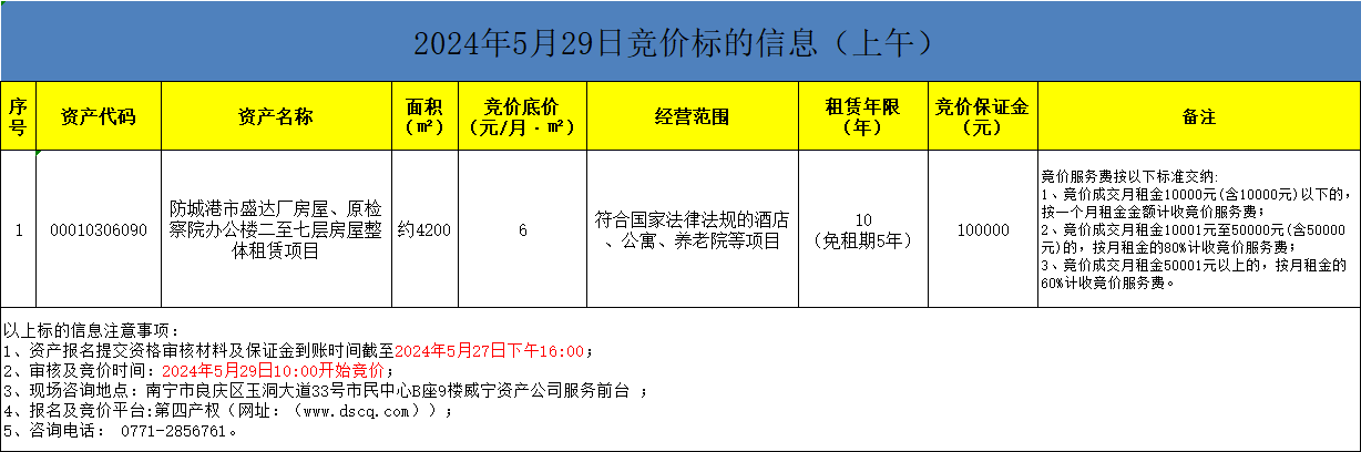 2024年5月29日竞价标的信息(线上竞价)