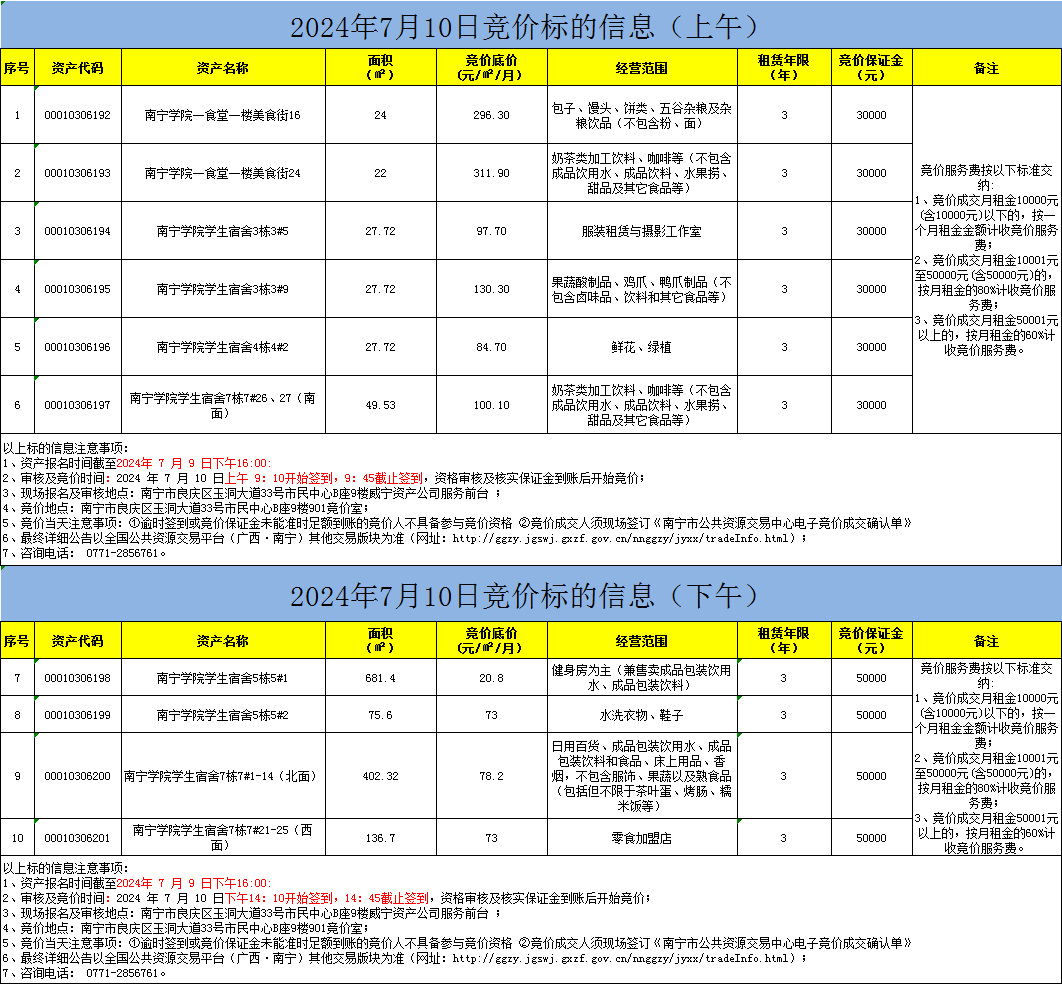 2024年7月10日竞价标的信息(现场竞价)