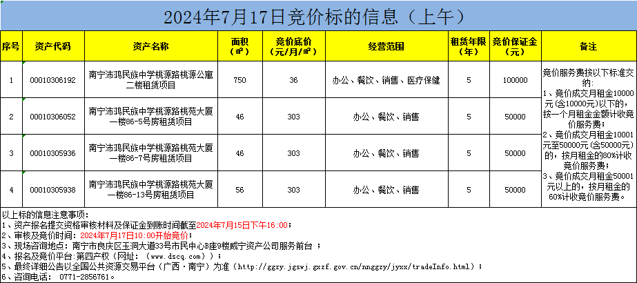 2024年7月17日竞价标的信息(线上竞价)