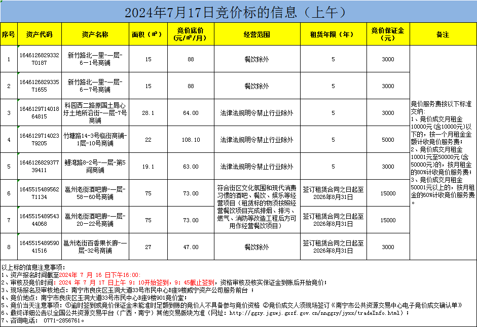 2024年7月17日竞价标的信息(现场竞价)