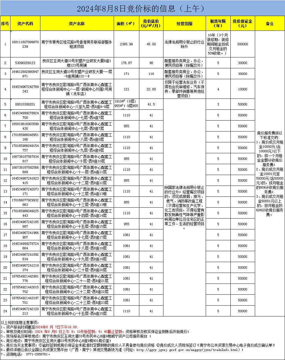 2024年8月8日竞价标的信息(现场竞价)