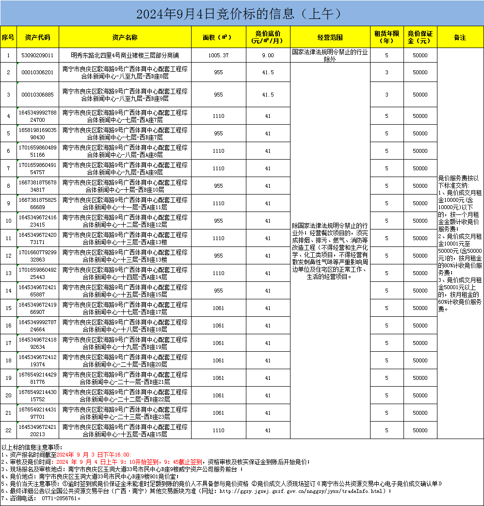 2024年9月4日竞价标的信息(现场竞价)
