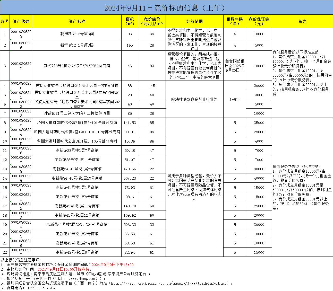 2024年9月11日竞价标的信息(线上竞价)
