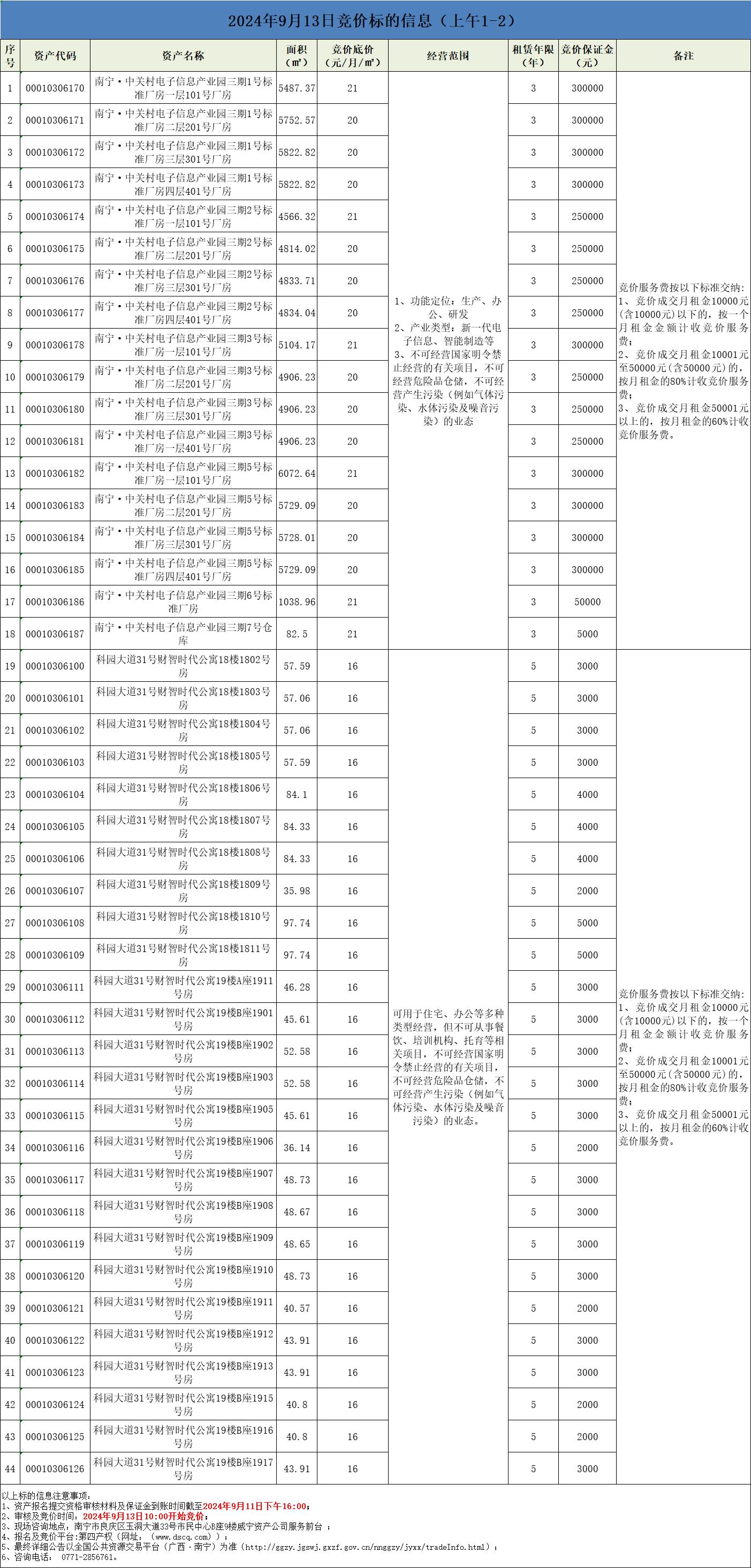 2024年9月13日竞价标的信息(线上竞价1-2)