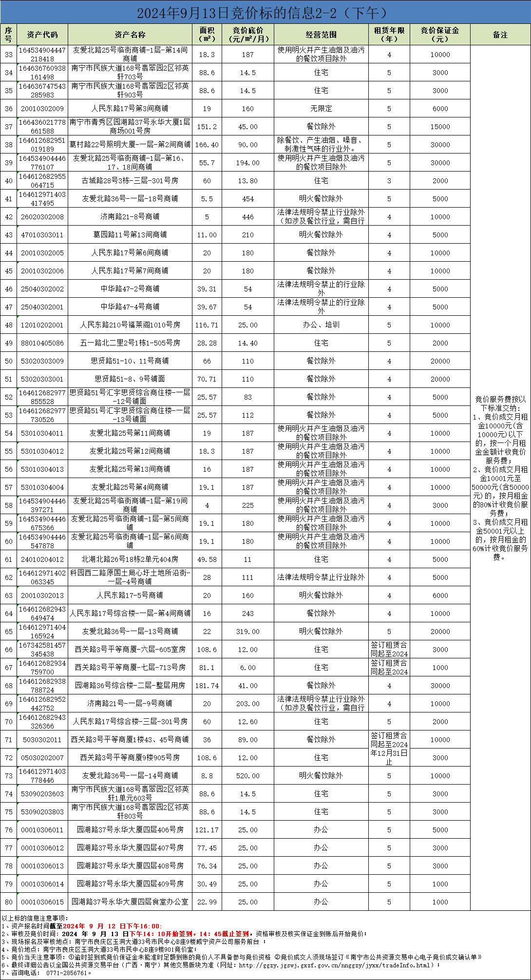 2024年9月13日竞价标的信息(现场竞价2-2)