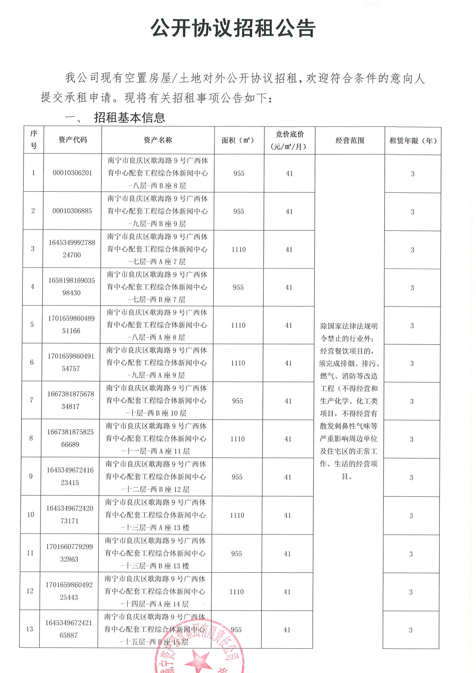 南宁市歌海路9号广西体育中心配套工程综合体新闻中心公开协议招租公告