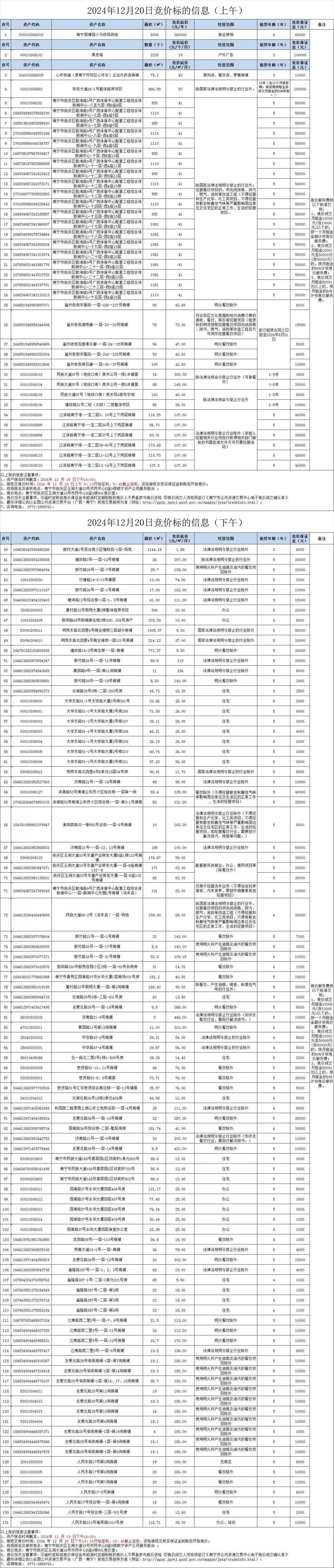 2024年12月20日竞价标的信息(现场竞价)