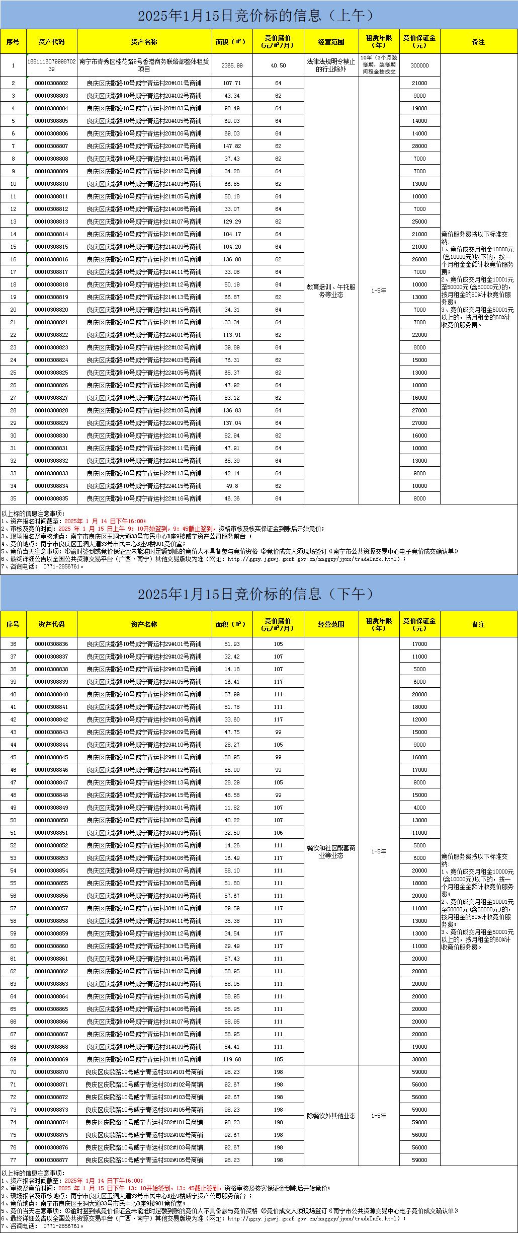 2025年1月15日竞价标的信息(现场竞价)