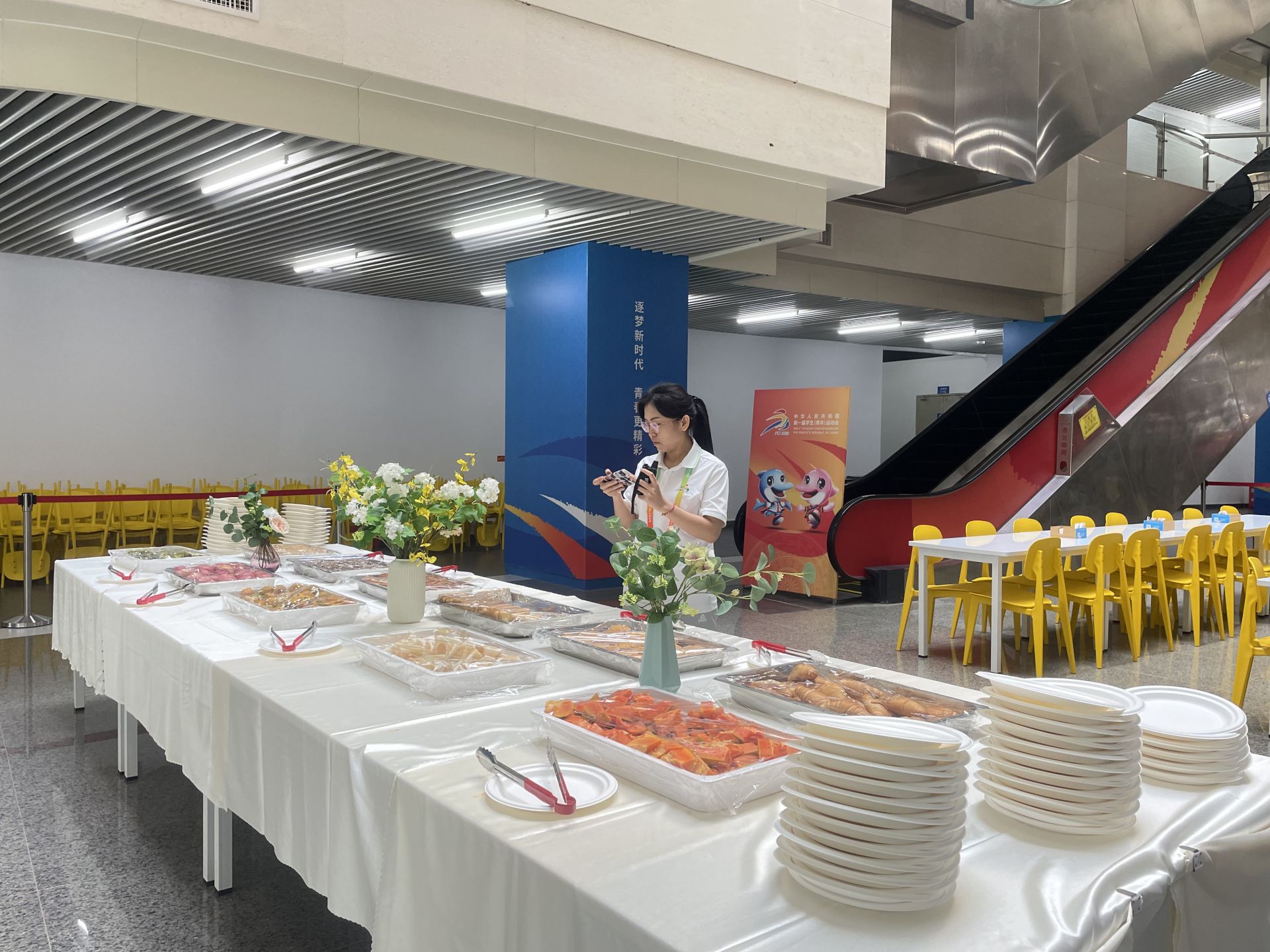 据了解,韦婉玲于2023年7月7日由威晧供应链集团借调至运动员村开展工作,先是负责食材供应链组织的采购,后面又调整为运动员餐厅的后厨管理工作,同时协助兼顾外带常温餐包的管理工作。“哪里需要我就往哪里冲嘛。”韦婉玲质朴的笑笑说。她坦言,就前期的工作内容来说,如何在3个月的时间内,配合中心将所有466个食材单品逐一落实供应商,包括遴选、试样、招标、谈价、合同签订等工作,时间短、任务重,那段筹备工作的时间现在回想起来还是觉得压迫感十足。但有赖于中心全体同事的通力合作,她顺利地在测试赛前完成了所有食材的筹备工作。