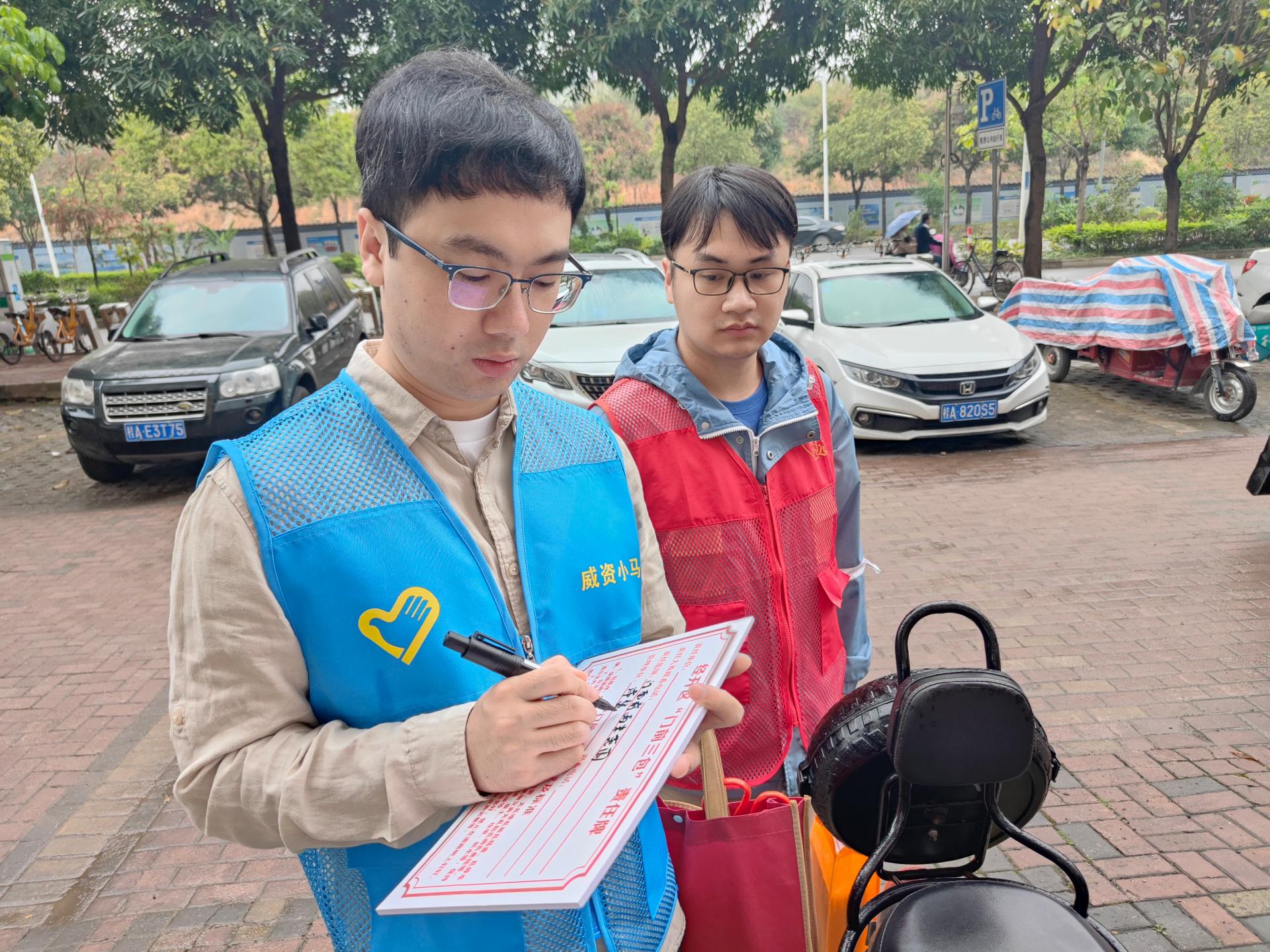 公司党委副书记、总经理邓小原带领“威资小马”志愿服务队与沛贤社区通力协作,在沛贤社区周边广场、沿街商铺、老旧小区开展环境卫生整治活动。在阴霾降雨的天气,党员志愿者发扬“服务人民”的雷锋精神和“能帮就帮”的南宁精神,兵分三路与社区志愿者们组成“红蓝穿梭线”,穿梭在道路沿线、老旧小区清理垃圾杂物、清除“小广告”,整治沿街商铺“门前三包”问题,治理卫生环境。同时向群众宣传健康卫生环境的重要性,引导社区居民共同参与卫生整治,做好干净整洁、优美宜居环境的维护者。