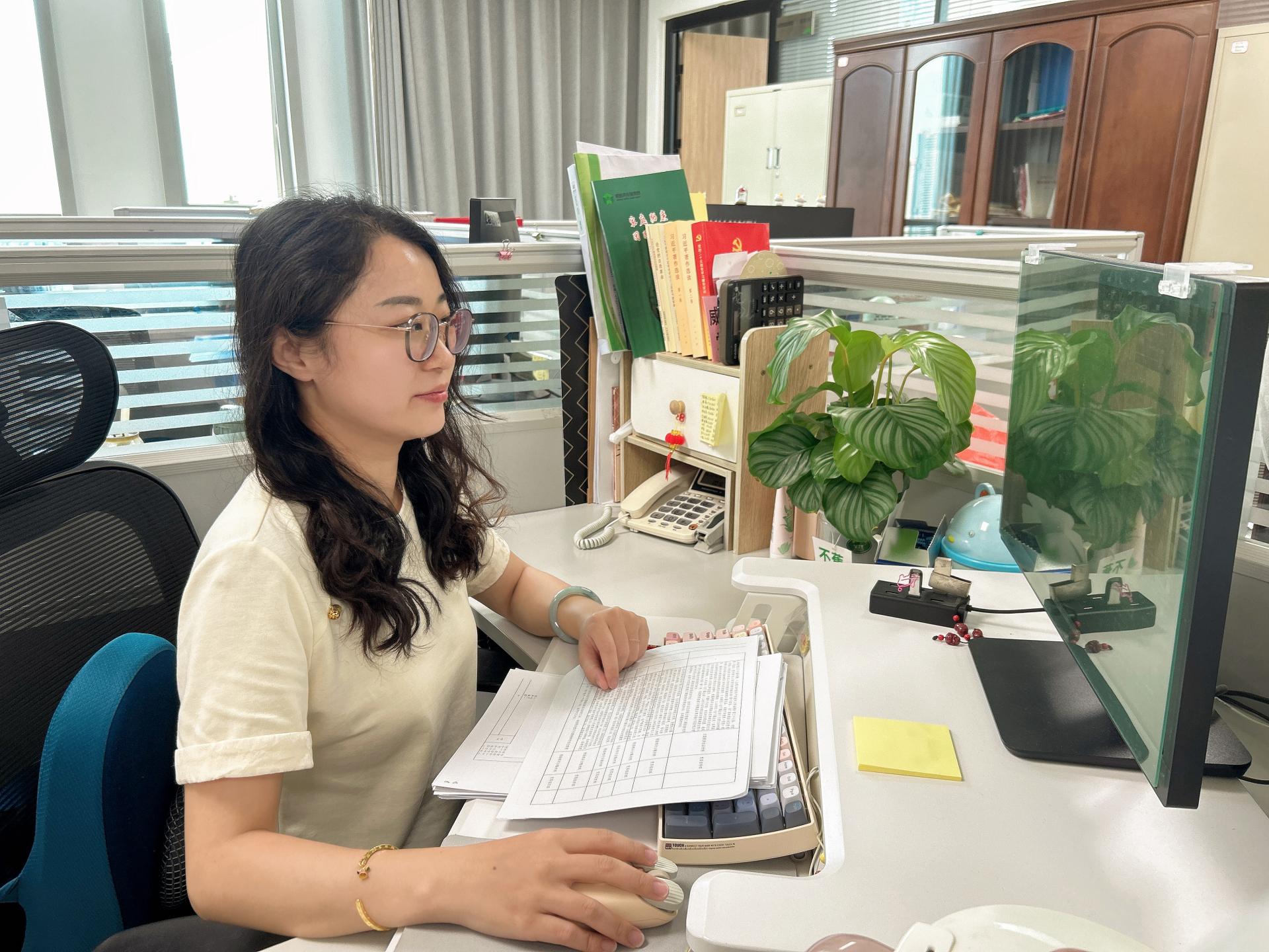 梁晶晶正在整理考核材料