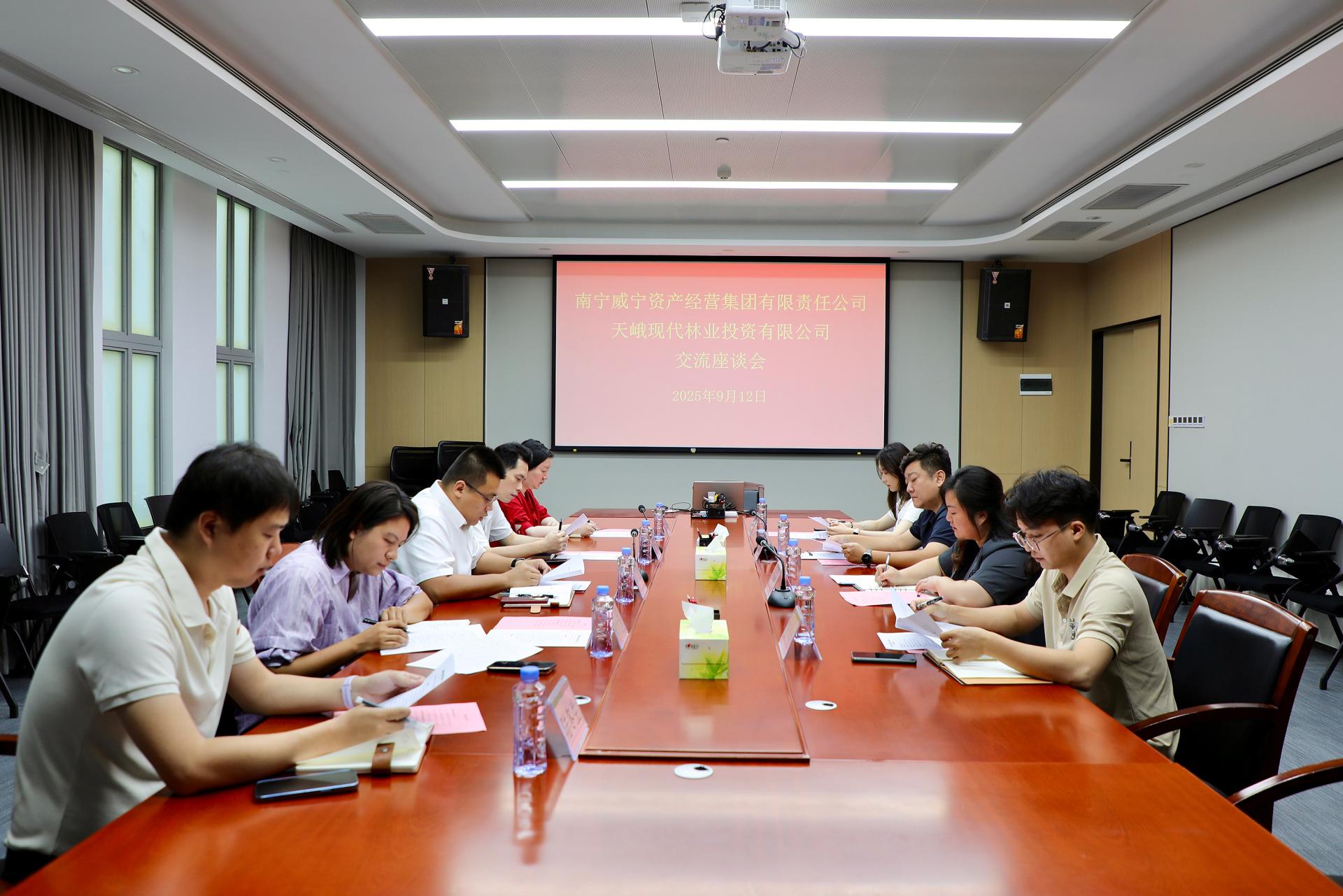 座谈会现场9月12日,万搏在线(中国)唯一官方网站所属万搏在线(中国)唯一官方网站资产经营集团与来访的天峨现代林业投资有限公司(以下简称“天峨林投公司”)召开工作座谈会,双方围绕国有资产运营管理工作进行交流座谈。万搏在线(中国)唯一官方网站资产经营集团副总经理黄轩、潘涌对天峨林投公司常务副总经理任玉强一行的到来表示热烈欢迎,希望通过座谈交流进一步搭建沟通桥梁,实现经验互通,携手共谋发展篇章。随后,万搏在线(中国)唯一官方网站资产经营集团向天峨林投公司分享了国有资产运营及管理工作经验...