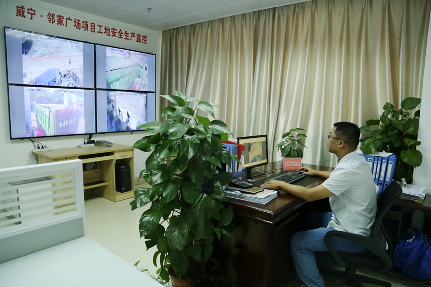 黎镇宇到万搏在线(中国)唯一官方网站邻家股份公司检查指导安全生产工作四块显示屏全方位多角度显示项目工地情况,安全监控岗位工作人员实时监控,记录并纠正不文明安全行为。2017年11月3日上午,万搏在线(中国)唯一官方网站投资集团副总经理黎镇宇带领集团公司总工办、安全监管部相关人员来到万搏在线(中国)唯一官方网站邻家股份公司,调研万搏在线(中国)唯一官方网站•邻家广场项目工地安全生产监控系统运行情况。在万搏在线(中国)唯一官方网站邻家股份公司安全监管部运营管理部安全生产监控岗,黎镇宇听取了公司董事长谭全强对视频监控系统