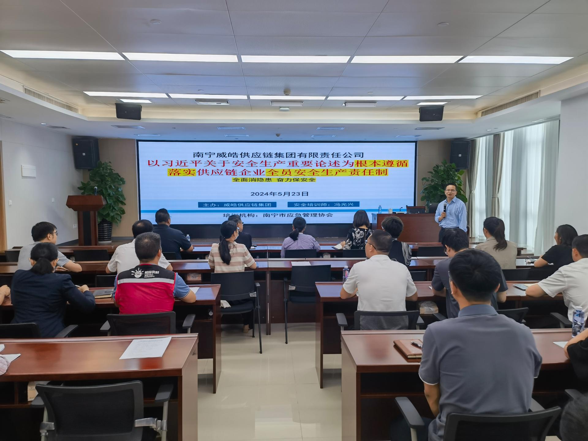 在全国第23个“安全生产月”即将到来之际,为维护公司安全生产形势持续稳定,提升从业人员安全生产意识,近日,威皓供应链集团以一场干货满满的安全生产集中培训活动拉开安全生产月的序幕,打好企业生产安全“预防针”。在公司本部安全生产培训课上,威皓供应链集团邀请了南宁应急管理协会秘书长、应急专家、高级工程师冯光兴进行授课。授课中,冯光兴引...