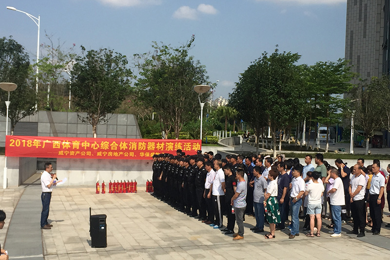 2018年5月18日下午,万搏在线(中国)唯一官方网站资产公司、万搏在线(中国)唯一官方网站房地产公司、华保盛物业等单位在广西体育中心综合体联合开展消防器材演练活动,各单位共110多人参与此次活动。本次消防器材演练主要是使用灭火器和消防栓进行灭火实战演练。
