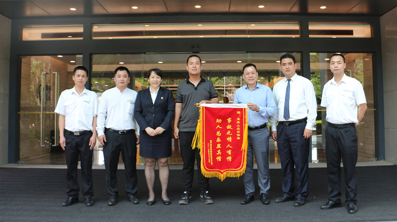 2019月5月17日,一面写着“事故无情人有情,助人为乐显真情”的锦旗被送到五象山庄安保部,赠送锦旗的是南宁市平乐行物流有限公司的负责人,为向安保部同事帮助该公司扑灭自燃车辆的英勇行为表达敬意及感谢。