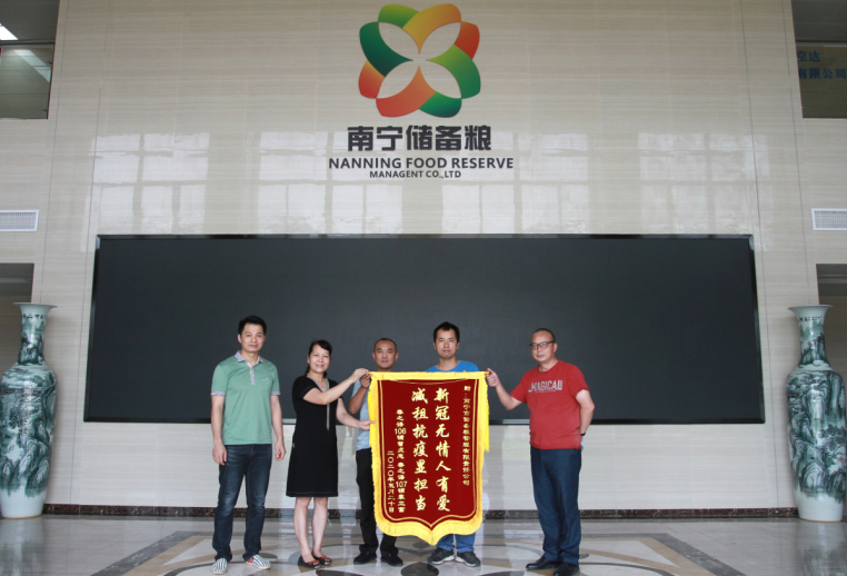 2020年5月27日,承租南宁市储备粮公司白沙大道江南新兴苑1栋春之语106号、107号铺面的两位承租户送来感谢锦旗,由衷感谢储备粮公司在疫情期间主动减免租金。