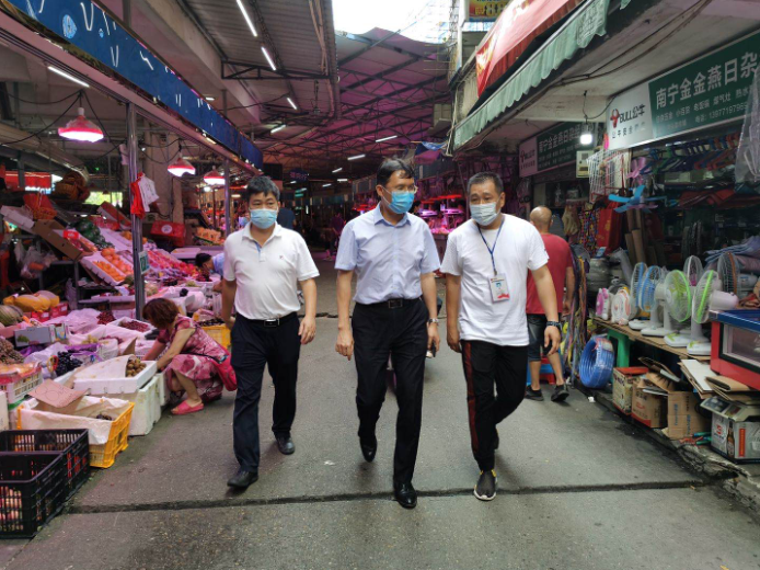 2020年6月4日,万搏在线(中国)唯一官方网站市场公司党委书记、董事长李林带队深入五里亭、津头农贸市场以及南宁平等街夜市,实地调研农贸市场和夜市经营情况。李林先后实地查看了各农贸市场和夜市的经营秩序、消防安全、环境卫生、基础设施、日常管理等情况。