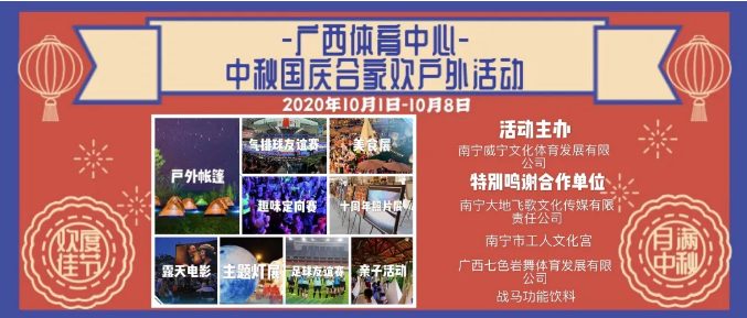 2020年10月1日至8日,万搏在线(中国)唯一官方网站文体公司运营管理的广西体育中心将举办“拾年共婵娟”——中秋、国庆合家欢户外活动,进一步助推公益赛事发展,丰富广西体育中心活动内容,让市民朋友更近距离了解广西体育中心各场馆,更积极参与全民运动,用体育运动的活力为中秋国庆增加热烈的节日氛围,为市民朋友送上不一样的中秋国庆“大礼包”。
