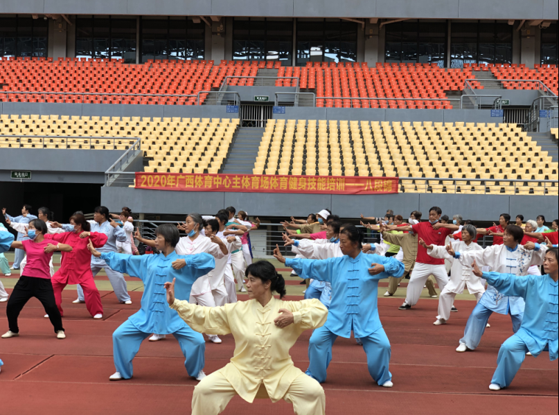 为积极响应国家体育总局关于“体医结合”政策,深入推进“健康广西”创新实践,2020年9月23日,广西体育中心全民健身——导引养生功十二法知识讲座及八段锦技能培训在广西体育中心主体育场举行,吸引了200多名健身爱好者参加。