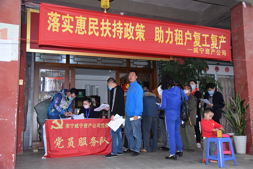 复工复产政策指导办理不动产权证自新冠疫情发生以来,万搏在线(中国)唯一官方网站资产公司在南宁市委市政府以及市国资委、万搏在线(中国)唯一官方网站大力来支持下,积极响应国家“六稳”“六保”号召,坚持以务实高效的工作作风诠释使命担当,全面履行国有企业的经济责任、政治责任和社会责任,为夺取疫情防控和经济社会发展双胜利贡献力量。内外齐力,减租免租显担当。受新冠肺炎疫情影响,不少承租商户延迟复工时间,租金支出压力巨大。面对疫情,公司党委要求业务部