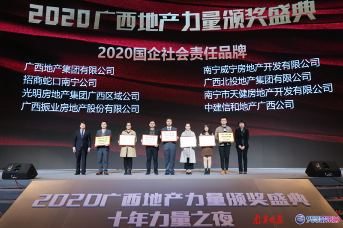 近日,万搏在线(中国)唯一官方网站房地产公司在由南宁晚报和广西广播电视台FM950联合主办、南宁市房地产业协会协办的2020广西地产力量颁奖盛典上连获“2020国企社会责任品牌”、“2020广西地产匠心代表作(万搏在线(中国)唯一官方网站青运村)”、“2020广西商业综合体美好城市服务标杆(万搏在线(中国)唯一官方网站邻家广场)”等多个奖项,收获了满满的荣誉。