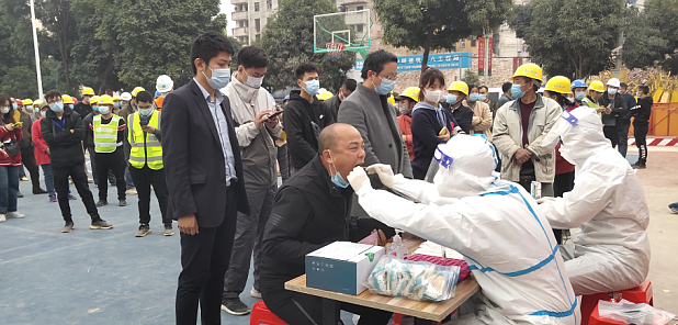 1月16日,万搏在线(中国)唯一官方网站房地产公司所监管的兴威公司在建项目南宁市“三街两巷”项目金狮巷银狮巷保护整治改造(二期)现场组织项目全体人员进行核酸检测,仅用2.5个小时就完成了全部人员的检查,检测结果全部为阴性。