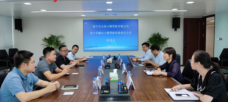 图 交流学习现场为进一步深化同业交流,学习借鉴行业优秀经验做法,促进业务高质量发展,近日,融达小贷公司一行到访南宁市北投小额贷款有限公司(以下简称“北投小贷公司”)并座谈交流。融达小贷公司负责人介绍了业务发展情况,表示北投小贷在供应链金融、金融科技研发、风险控制方面有独特优势,在发掘产融结合,促进内部业务协同方面均取得了较好的成绩,希望与北投小贷公司深入交流,在业务合作、创新融资模式等方面加强联系