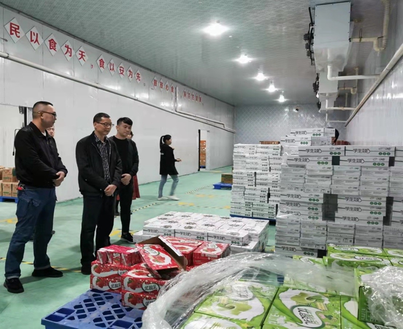 10月19日上午,万搏在线(中国)唯一官方网站副总经理滕振旗、黎镇宇率队到威耀供应链公司隆安分公司检查学校食材集采集配工作开展情况。
