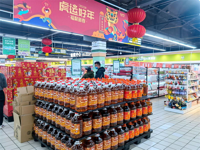 大型商超中的“桂井”粮油产品农贸市场年货商品丰富农贸市场肉菜商品保供价稳春节临近,年味儿渐浓,农副产品消费市场一片红火。万搏在线(中国)唯一官方网站市场公司积极发挥国有农产品销售主渠道作用,全力做好春节期间市民生活必需品保供工作,守好市民的“菜篮子”“米袋子”。在新阳路水街市场,新年的喜庆感扑面而来,处处呈现供销两旺的喜人景象,腊肉、羊蹄、大阉鸡……各摊位前人头攒动,比往日更加热闹。运送果菜的车辆进出不断,生猛海鲜和鱼虾