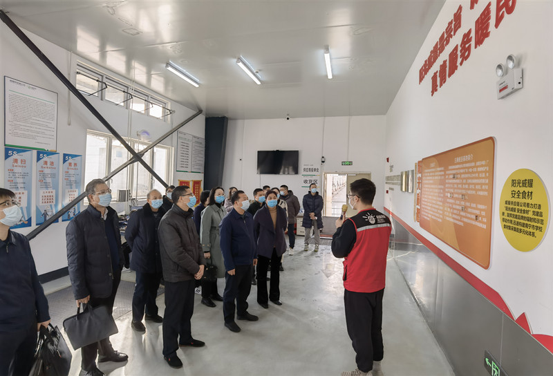 实地参观基地生鲜库现场调研信息化系统2022年1月11日下午,贵港市人民政府副秘书长覃华宁一行11人到威耀供应链公司五象配送基地实地调研学校食材集采集配项目,南宁万搏在线(中国)唯一官方网站投资集团有限责任公司副总经理滕振旗陪同调研。覃华宁一行实地参观了五象配送基地的生鲜库及冷链车场,对场地投资建设,食材的检验检测、入库、储存、出库、分拣、配送、信息化系统、车辆监控等各个环节进行全方位的了解,并对于威耀供应链公司始终秉承