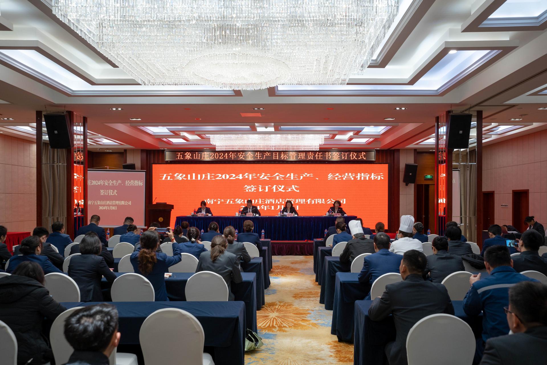 为了更好地完成2024年度经营目标,2024年1月8日上午,南宁五象山庄酒店管理有限公司在9号楼宴会厅召开了2024年经营工作部署会暨2024年经营指标责任书签订仪式。会上,安保部和财务部负责人分别汇报了2023年安全生产工作开展情况和2023年经营完成情况及2024年经营指标解析,分析研判当前形势,明确公司年度发展工作思路和目标。常务副总经理何月...