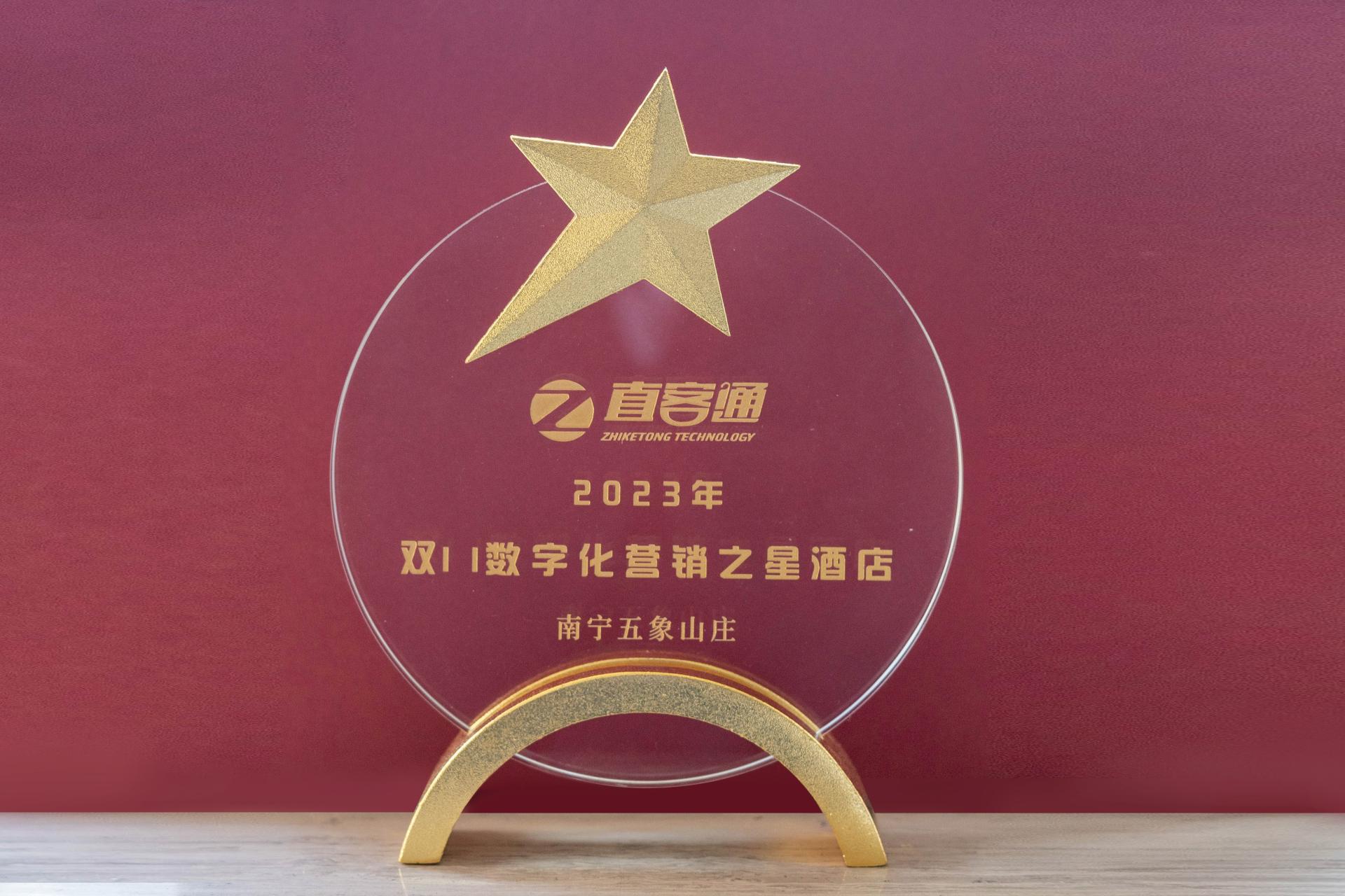 南宁五象山庄荣获2023年直客通“双11数字化营销之星酒店”奖项