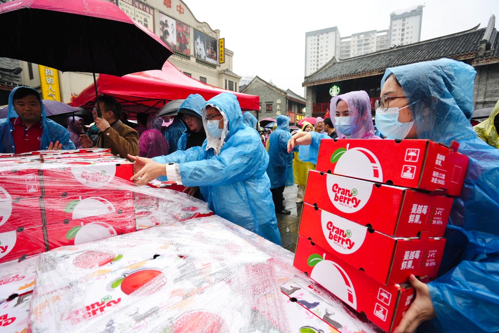 双向奔赴 甜蜜相拥——黑龙江蔓越莓在邕州古城·三街两巷发放