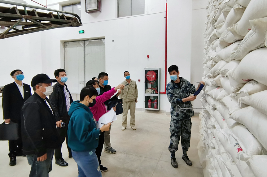 2020年4月10日,自治区粮食和物资储备局执法督查处处长唐双贵带队到储备粮公司,开展应急成品粮库存专项检查,确保在特殊情况下,成品粮应急储备能够“拉的出,供的上”。