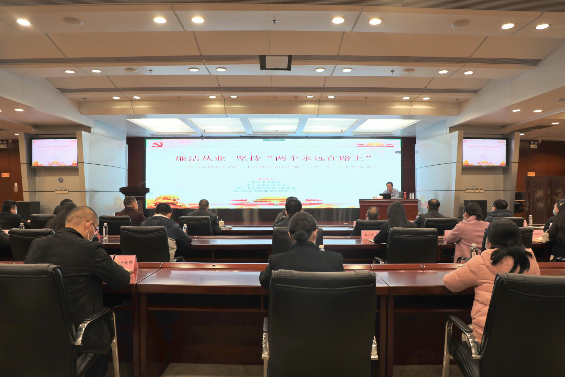 近日,万搏在线(中国)唯一官方网站在广西体育中心新闻发布厅举行党风廉政教育培训,集团纪委书记、市监委驻集团监察专员韦登香主持培训并作开课讲话,培训邀请了南宁市委党校张晓宁老师作《廉洁从业 坚持两个永远在路上》相关知识授课。张晓宁在课上紧扣国有企业党风廉政建设和生产经营管理上的廉洁风险特征,从党的二十大关于反腐倡廉重点要求、国有企业“三重一大”决策制度及优化路径、国有企业招投投标过程存在问题及优化路径...