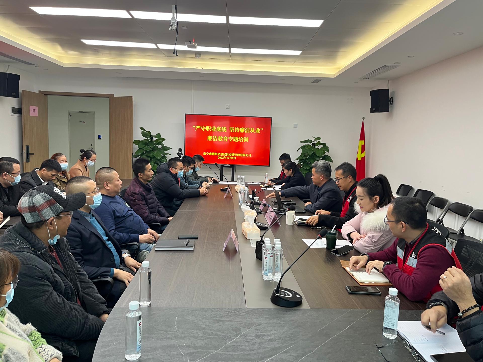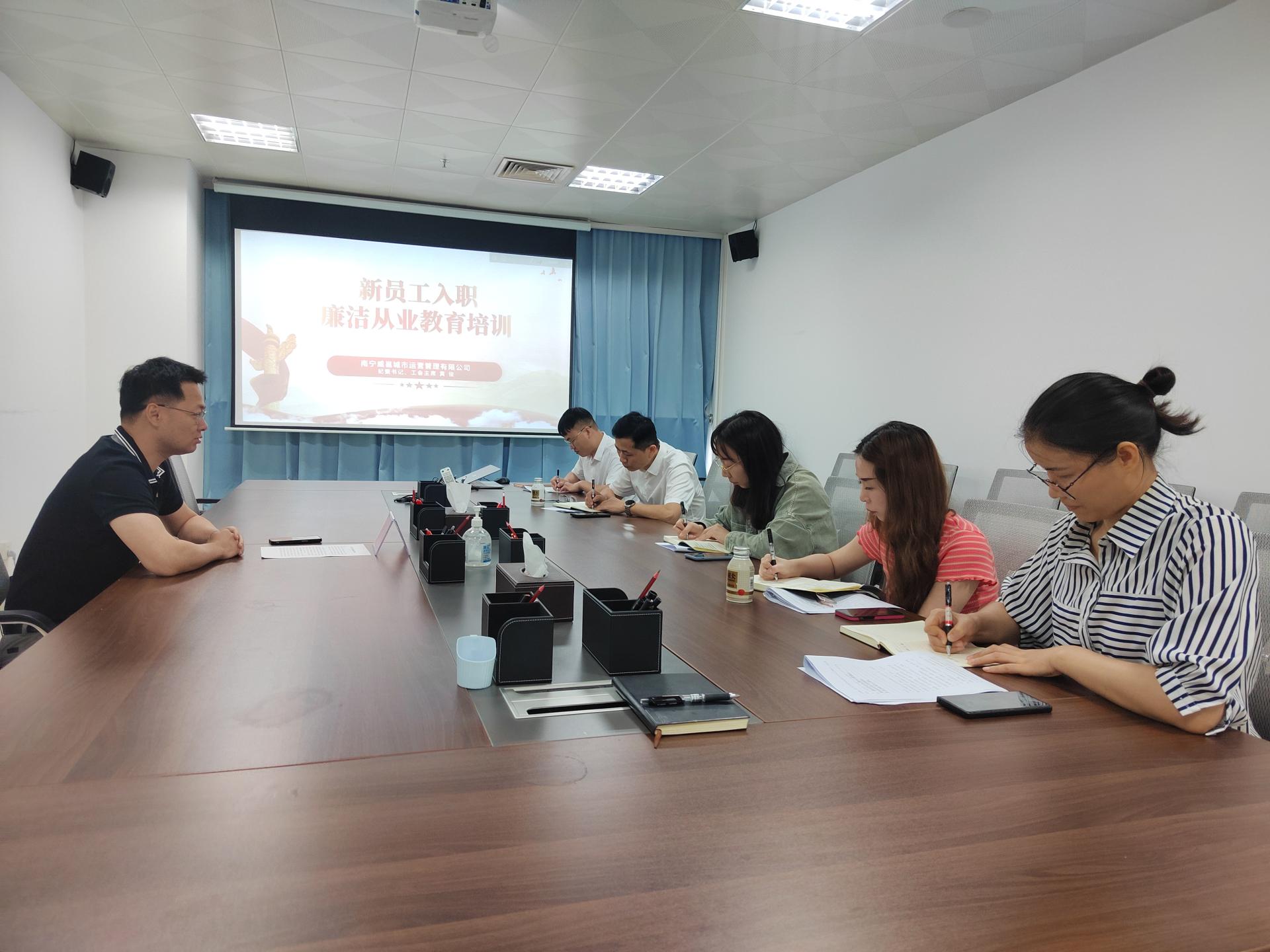 为进一步增强新入职员工廉洁自律意识和拒腐防变能力,以学铸魂,筑牢信仰之基、补足精神之钙,2023年5月23日,威邕城市运营公司召开新入职员工廉洁从业教育培训,由公司纪委书记黄俊主讲。培训学习了“深刻认识当前反腐败斗争的新形势”、“国企出现腐败的原因和防范措施”和“学习廉洁法律法规”等方面内容,切实增强新入职员工遵守规章制度的思想自觉和行动自觉。培训结束后,黄俊同志开展集体廉...