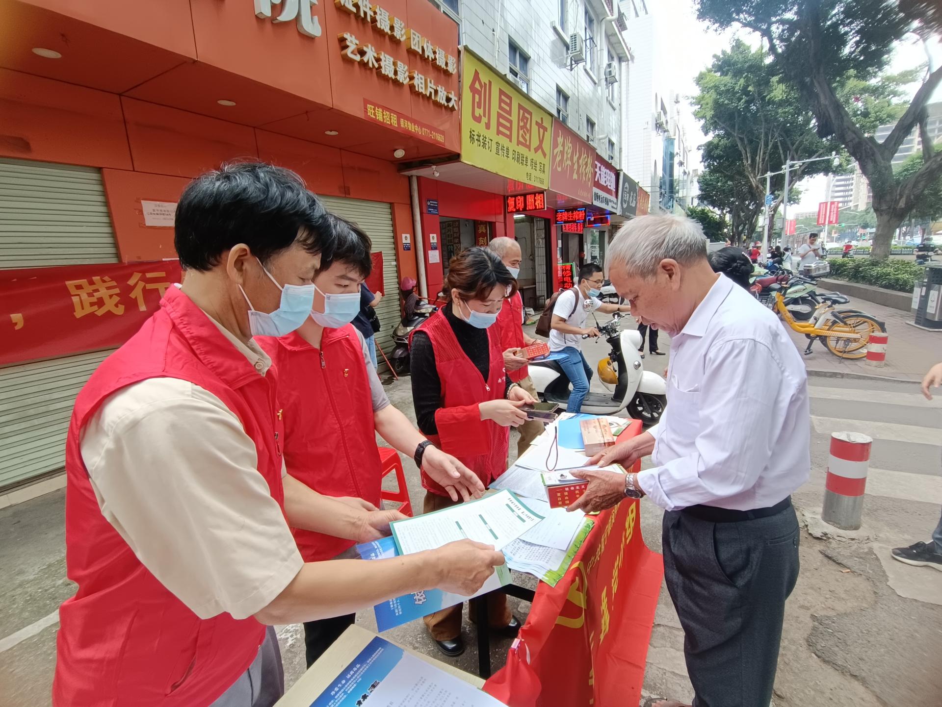向群众派发宣传单“韦大姐,最近南宁市实行了垃圾分类质量不合格不收运不处置专项行动,尤其是您作为餐饮店经营者,要从源头上做好厨余垃圾、易混淆的易腐垃圾和其他垃圾的分类处置,以提升餐馆整体品味哦!”党员志愿者指着手上的宣传文件对某榨粉经营店老板耐心的说道。2022年5月19日,万搏在线(中国)唯一官方网站酒店公司党委所属银河公司党支部组成一支党员志愿服务先锋队,联合友爱中社区、广西特卫保安服务有限公司到所辖友爱北路15号南地宿舍...