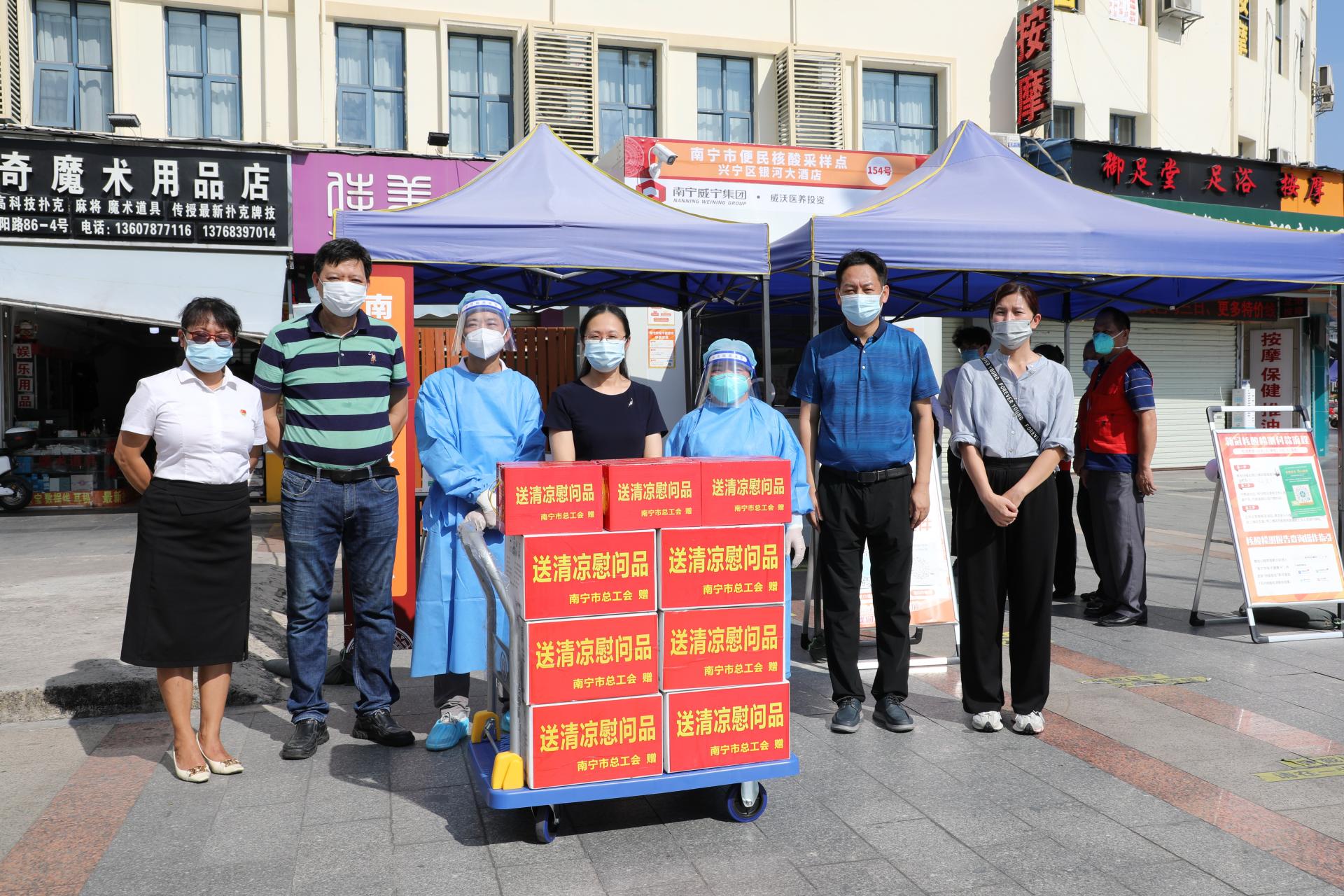 8月15日下午,南宁市总工会副主席冯晓华带领慰问组到威沃医养公司便民核酸采样点开展“炎炎夏日送清凉”慰问活动,为在高温天气下坚守岗位的便民核酸采样点工作人员送去一份夏日的清凉。集团党委副书记、工会主席马超毅参加慰问活动。慰问中,冯晓华详细了解便民核酸采样点工作、人员配备、工作时长和轮岗等相关情况,向奋战在高温酷暑下的一线工作...