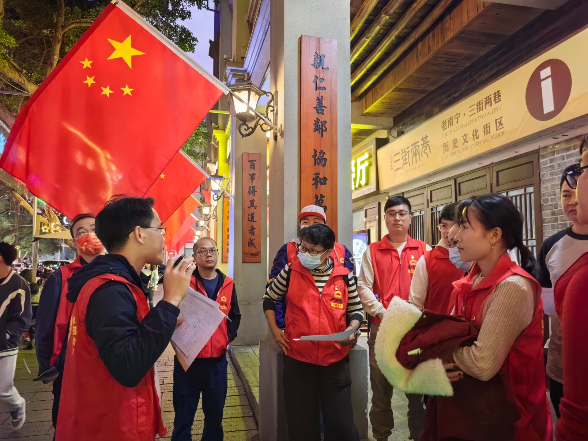 2023年12月31日跨年夜,南宁全城沸腾,邕州古城·三街两巷举办的“古城新礼 邕派生活”迎新活动更是人潮涌动。为更好发挥志愿服务在保障各级重大活动中的重要作用,12月31日至1月1日凌晨,威邕城市运营集团机关联合党支部、银河公司联合党支部组织党员志愿者在邕州古城·三街两巷集体跨年,用“威邕红”扮靓“志愿红”。当天晚上,志愿者们在邕州古城·三街两巷的各个客流高度密集区域开展文明秩序维...